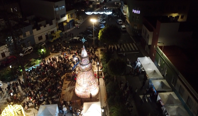 8.500 rosetas tejidas a mano por las vecinasde La Atalaya decoran el Árbol de Navidaddel barrio