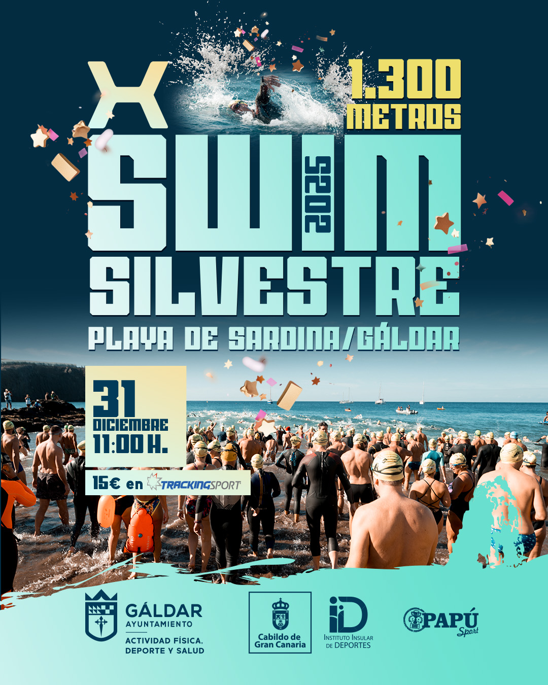 Gáldar, 27 de noviembre de 2025-. La X SwimSilvestre de Sardina de Gáldar ya está en marcha. La travesía a nado organizada por la Concejalía de Actividad Física, Deporte y Salud del Ayuntamiento de Gáldar que dirige Ancor Bolaños acaba de abrir inscripciones para su celebración en la Bahía de Sardina el próximo 31 de diciembre a partir de las 11:00 horas.