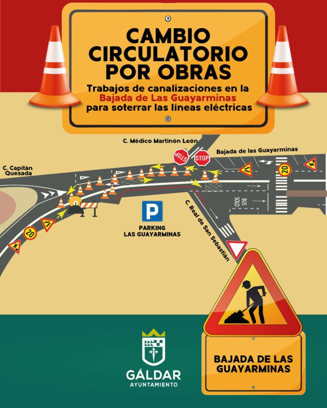 El Ayuntamiento de Gáldar arranca este martes 21 de octubre una obra para el soterramiento de un tramo del trenzado aéreo de baja tensión, alumbrado público y telecomunicaciones situado junto al Aparcamiento de Las Guayarminas y la entrada a la calle Real de San Sebastián.