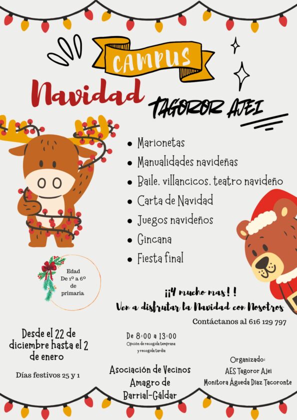 AES Tagoror Ajei organiza un Campus de Navidad en la Asociación de Vecinos Amagro de Barrial, desde el 22 de diciembre hasta el 2 de enero.