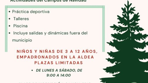 La Aldea de San Nicolás, martes 9 de diciembre de 2025 – El Ayuntamiento de La Aldea de San Nicolás anuncia la puesta en marcha un año más del Campus de Navidad, una iniciativa incluida dentro de las actividades del Plan Corresponsables 2025. Este recurso está destinado a menores empadronados en el municipio con edades comprendidas entre los 3 y los 12 años. El Campus se desarrollará del 22 al 31 de diciembre, de lunes a sábado, en horario de 09:00 a 14:00 horas, y ofrecerá una amplia variedad de actividades…