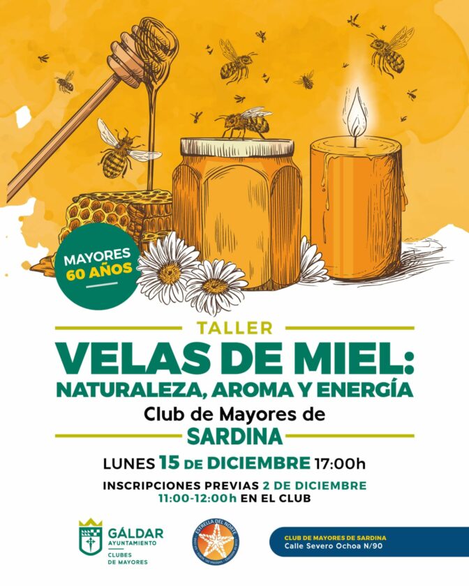 El primer taller se celebrará el lunes 15 de diciembre a las 17:00 horas en el Club de Mayores de Sardina, ubicado en la calle Severo Ochoa, número 90. En esta sesión, los participantes trabajarán de forma práctica y creativa con cera de miel natural, aprendiendo a moldear, cortar, ensamblar y decorar sus propias velas con elementos navideños, en un entorno sensorial y relajado.