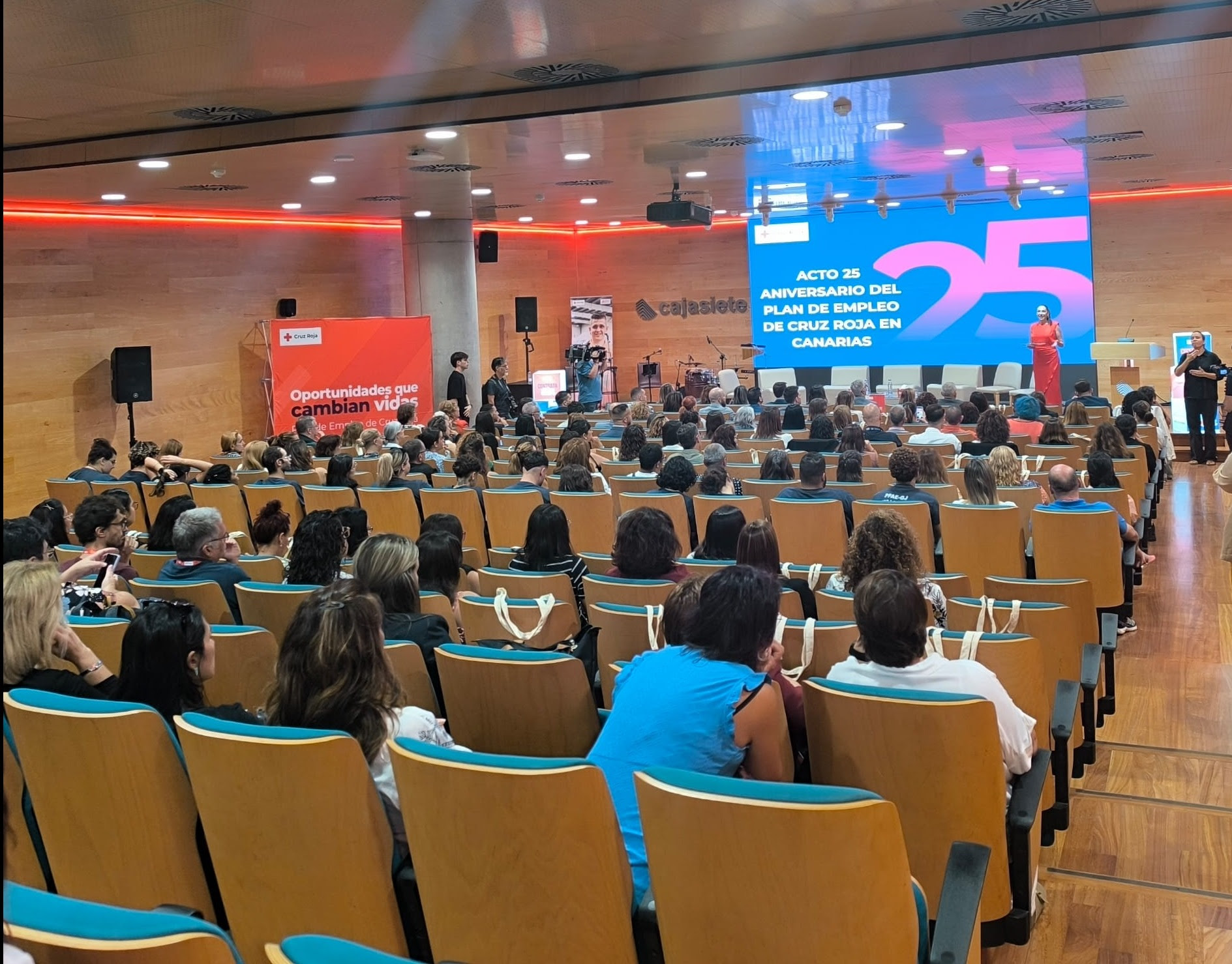 | La apertura estuvo a cargo de Heliodoro González, presidente provincial de Cruz Roja en Santa Cruz de Tenerife, quien destacó que “durante estos años, Cruz Roja ha demostrado que la inserción laboral es mucho más que encontrar un trabajo: es ofrecer esperanza, autonomía, fortalecer capacidades y devolver la confianza a quienes más lo necesitan. Un cuarto de siglo después, podemos decir que este recorrido ha sido profundamente transformador”.González también subrayó el alcance del Plan de Empleo en Canarias explicando que “en estos 25 años hemos atendido a más de 49.000 personas, de las cuales cerca de 12.000 han logrado insertarse en el mercado laboral, gracias al apoyo de más de 2.800 empresas colaboradoras”.“Durante todo este tiempo hemos apoyado a colectivos especialmente castigados por el desempleo, como jóvenes sin cualificación, mayores de 45 años, mujeres en exclusión social, personas transexuales y familias en riesgo, donde todos sus miembros están en paro, ofreciéndoles orientación, formación práctica y adaptada al mercado laboral, y apoyo personal, además de ayudarles a recuperar la motivación y cubrir sus necesidades básicas”.Añadió el presidente provincial de Cruz Roja.La presidenta del Cabildo Insular de Tenerife, Rosa Dávila, acompañó la apertura institucional, destacando que «25 años no son solo una cifra, son 25 años de esperanza compartida, de historias que nos conmueven y nos inspiran a seguir luchando por una sociedad más justa, más humana, más igualitaria». Y aseveró que hoy, desde el Cabildo de Tenerife, «reafirmamos nuestro compromiso de seguir caminando junto a Cruz Roja. Porque sabemos que la inclusión no es un destino, es un camino que se construye cada día con empatía, con oportunidades y con la convicción de que nadie debe quedarse atrás».La ponencia inaugural fue ofrecida por María Ángeles Hernández, responsable del área de Protección de Datos y Transparencia del Observatorio Canario de Empleo (OBECAN), quien presentó una radiografía actual del mercado laboral en Canarias y los desafíos que aún persisten para lograr una inserción laboral más equitativa.Dos mesas redondas enriquecieron el encuentro. Por un lado, “Compartiendo el reto de la inserción laboral de las personas con más dificultades de acceso al empleo”, con la participación de representantes de la Plataforma del Tercer Sector (presidenta Mª Eugenia De León), la Unidad Administradora del Fondo Social Europeo (jefe de Área de la Autoridad de Gestión, Rafael Feo), la Universidad de La Laguna (cátedra Cajasiete de Economía Social y Cooperativa (CESCO), de la Facultad de Economía, Empresa y Turismo, Javier Mendoza), y de OBECAN (María Ángeles Hernández, responsable del área de Protección de Datos y Transparencia).Esta mesa reunió distintas miradas que se complementan: la experiencia directa en el terreno, la visión desde la gestión pública y el enfoque académico. Perspectivas clave para entender cómo se articula el ecosistema de inserción laboral en Canarias. En este espacio se reflexionó sobre cómo seguir impulsando itinerarios eficaces, alianzas sólidas y entornos inclusivos que hagan posible la inserción laboral de quienes más lo necesitan.La segunda mesa redonda, “La voz de las personas que acompañan”, estuvo protagonizada por personal técnico, voluntariado y participantes del Plan de Empleo de Cruz Roja. A través de sus testimonios, se compartieron vivencias reales de acompañamiento, superación y transformación personal.Historias como la de Ciria Salinas, una mujer venezolana mayor de 45 años que, tras enfrentar barreras por su edad, logró formarse y acceder a un empleo digno gracias al proyecto Desafío +45, demostrando que nunca es tarde para empezar de nuevo. Además, hace cinco años, en su compromiso y amor por los demás, decidió hacerse voluntaria de Cruz Roja, labor que continúa desempeñando hasta el día de hoy. También se conoció el caso de David Del Valle, padre de familia numerosa, quien pasó de estar desempleado a convertirse en coordinador del servicio de socorrismo de Cruz Roja, tras su paso por el proyecto PFAE Mar + Seguro. Y el testimonio de Monique Pani, mujer migrante que, tras superar grandes dificultades, logró un contrato indefinido en un supermercado gracias al acompañamiento del proyecto Barrios por el Empleo. Estas experiencias reflejan el impacto real del Plan de Empleo en la vida de las personas, y cómo, con apoyo y formación, es posible transformar la vulnerabilidad en oportunidad.Uno de los momentos más emotivos fue el reconocimiento a las empresas aliadas, que han colaborado activamente en la generación de oportunidades laborales, demostrando que la alianza entre el tejido empresarial y el tercer sector es clave para construir una sociedad más justa.El acto concluyó con una actuación musical dirigida por Danny Martínez y un encuentro profesional, que permitió seguir tejiendo redes y compartiendo experiencias.Esta iniciativa de Cruz Roja, está cofinanciada por el Fondo Social Europeo Plus (FSE+) con cargo al Programa Tramo Estatal de Prioridad de Región Ultraperiférica (CCI: 2021ES05SFPR009).En definitiva, el Plan de Empleo de Cruz Roja nació hace 25 años con la visión de contribuir al acceso en igualdad de condiciones a un empleo decente para todas las personas y ser una herramienta de generación de oportunidades que transforman vidas.Desde Cruz Roja se lanza una mirada al futuro, consciente de los retos que aún persisten en el mercado laboral canario: la digitalización, la despoblación rural, la brecha de género o el desempleo juvenil. La Organización reafirma su compromiso de seguir innovando, creando alianzas y adaptando su respuesta para que nadie se quede atrás. A seguir construyendo juntos un modelo de empleo inclusivo, donde cada persona pueda desarrollar su talento y su proyecto de vida.Tal y como explicó el presidente