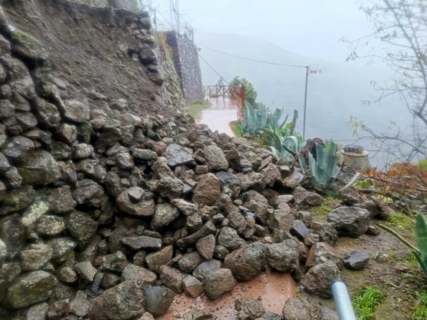 Tras el paso de la borrasca Emilia, que ha dejado precipitaciones superiores a los 200 litros por metro cuadrado en los últimos días, el Ayuntamiento de Gáldar ha activado los protocolos de emergencia para atender numerosos desprendimientos en zonas de medianías del municipio.