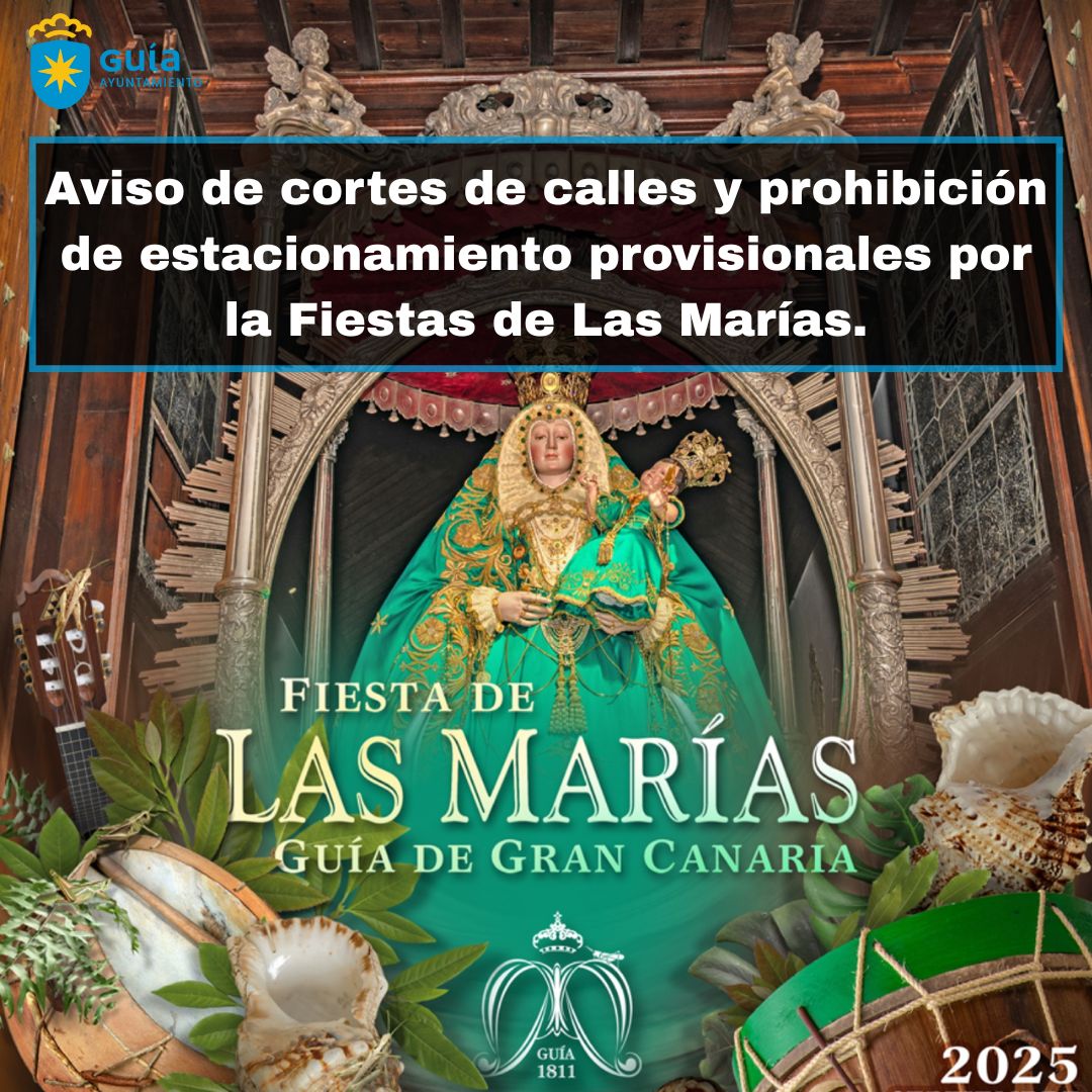 El Ayuntamiento de Guía informa sobre cortes de calles y restricciones de estacionamiento con motivo de la Fiesta de las Marías