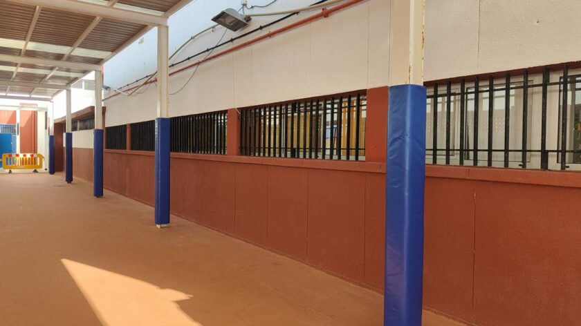 protecciones de las doce columnas del patio del CEIP Juan Arencibia