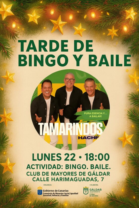 El Club de Mayores de Gáldar se une a la iniciativa “Tarde de Bingo y Baile”, una propuesta coordinada por diferentes clubes de mayores de Gran Canaria y organizada por el Gobierno de Canarias, con la colaboración del Ayuntamiento de Gáldar, a través de la Concejalía de Clubes de Mayores que dirige Antonio María Benítez Melían. El encuentro está previsto para el próximo lunes 22 de diciembre, a las 18:00 horas.