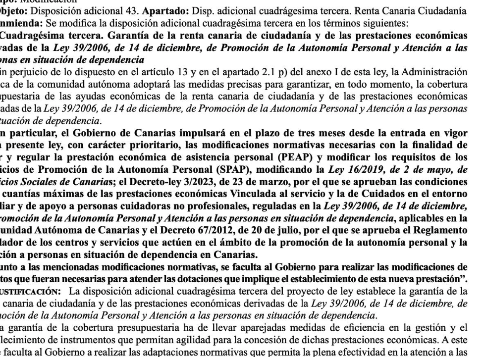enmienda y fichas financieras para que la asistencia personal se incluyera de forma