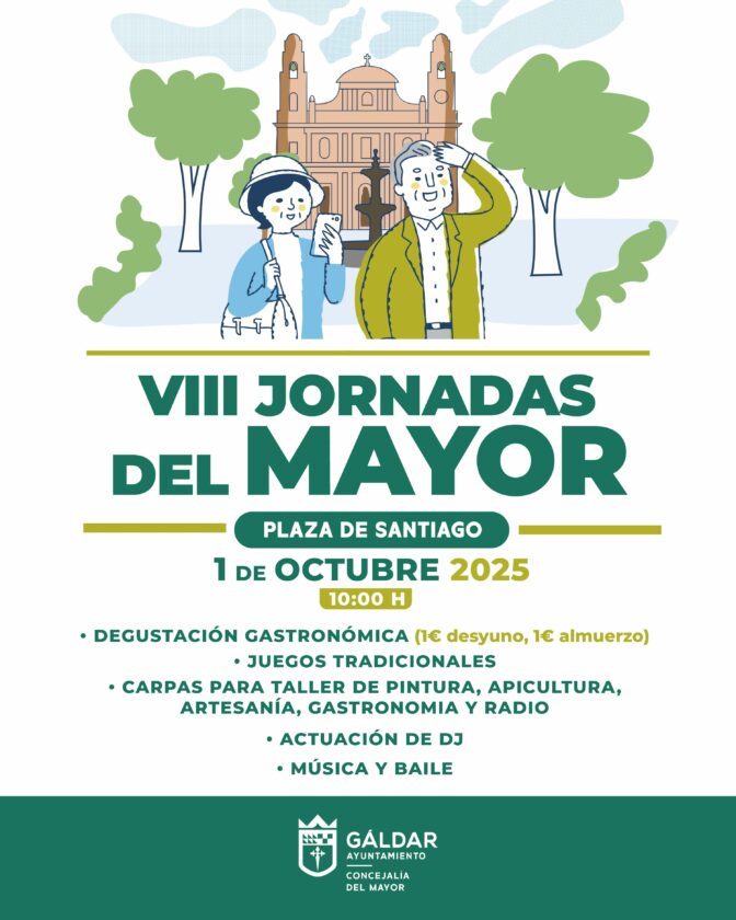 La Concejalía de Política del Mayor del Ayuntamiento de Gáldar, que dirige Dolores Delgado Jorge, organiza el próximo miércoles 1 de octubre de 2025, a partir de las 10:00 horas en la Plaza de Santiago, las VIII Jornadas del Mayor, un encuentro festivo y participativo diseñado para rendir homenaje a nuestros mayores y fomentar la convivencia intergeneracional.