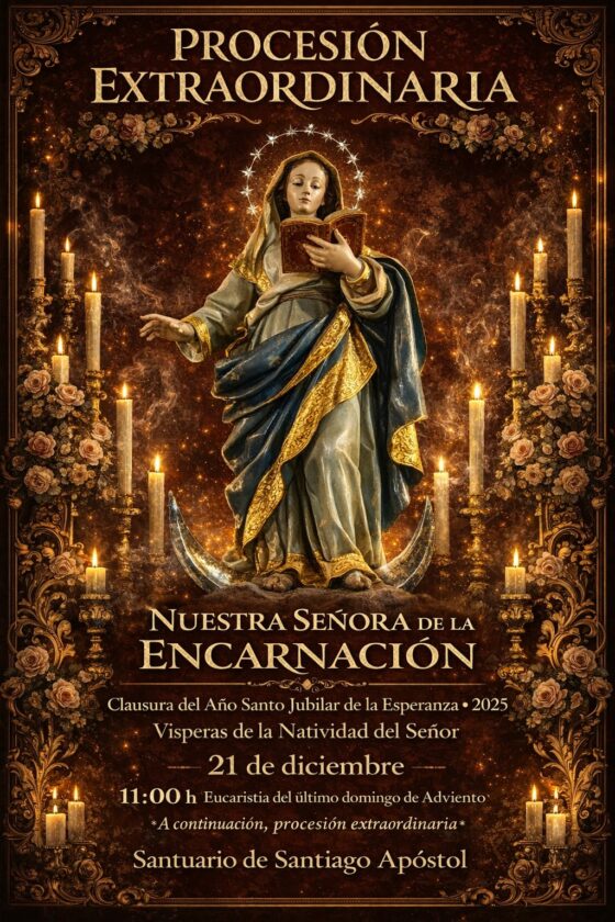 El Año Santo Jubilar de la Esperanza 2025 se clausura este sábado, 21 de diciembre, con una procesión extraordinaria de Nuestra Señora de la Encarnación, en coincidencia con las vísperas de la Natividad del Señor. Este acto religioso forma parte del programa navideño del municipio y representa un momento culminante de devoción y comunidad en torno a la figura mariana.