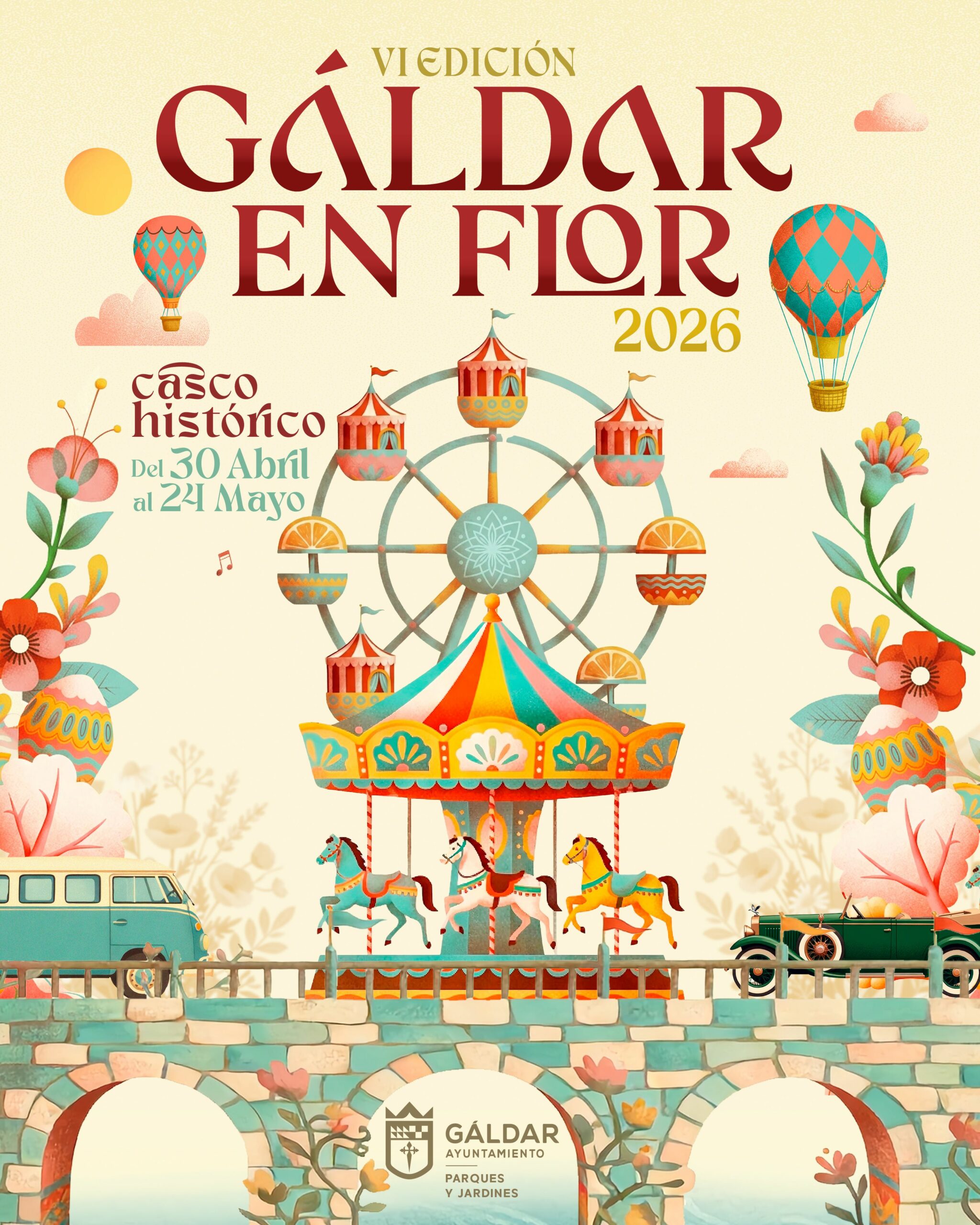 Esta iniciativa, organizada por la Concejalía de Parques y Jardines del Ayuntamiento de Gáldar, que dirige Nicolás Mederos Díaz, contará con una gran variedad de especies como geranios, margaritas, girasoles, hortensias, helechos, petunias, gerberas e impatiens, entre otras. Asimismo, explica que la temática de esta edición, tal y como refleja el cartel, está dirigida a clásicos elementos vinculados a la primavera y a las fiestas que se celebraban en la Plaza como norias, tiovivos o molinillos de viento.