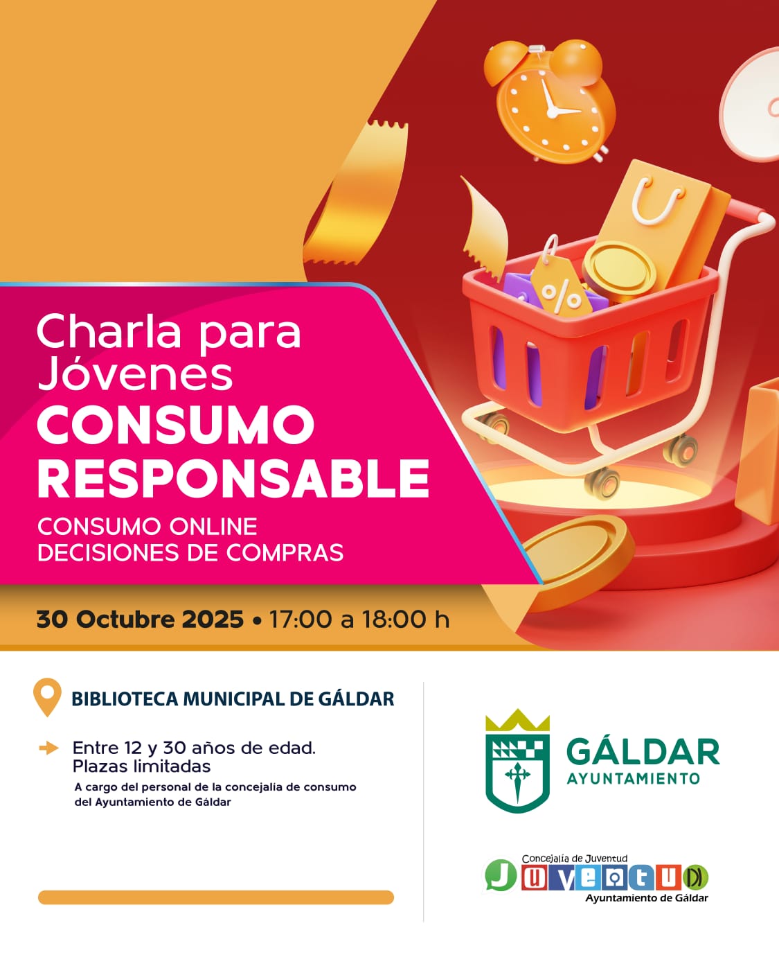 La Concejalía de Juventud del Ayuntamiento de Gáldar, que dirige Antonio María Benítez Melián, celebrará el próximo jueves 30 de octubre una charla formativa sobre consumo responsable, dirigida a jóvenes del municipio con edades comprendidas entre 12 y 30 años.