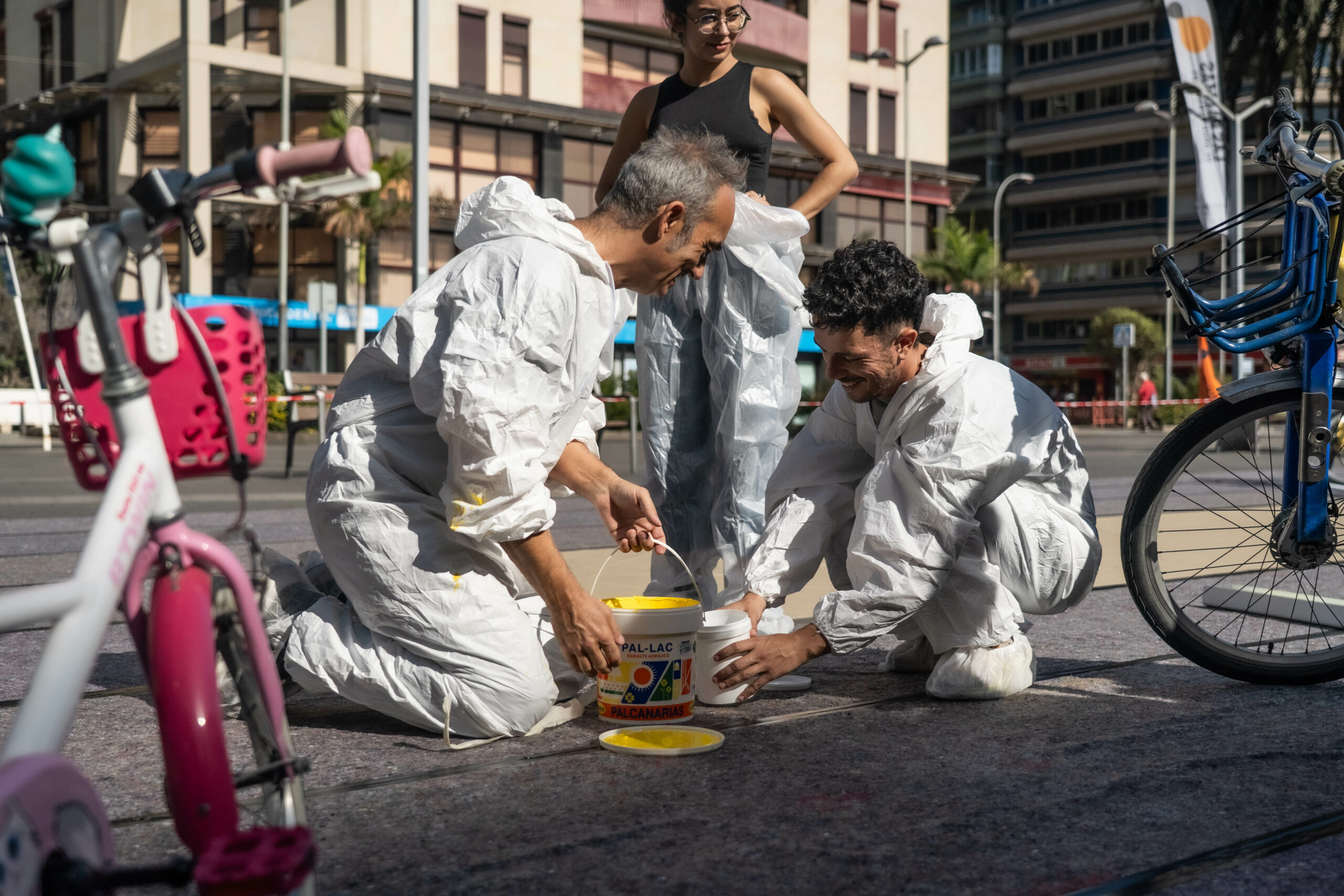 El equipo artístico PSJM mostrará el próximo 6 de marzo, a partir de las 12:00 horas, en el espacio La Embajada / Estudio Núñez Gasco, en Carabanchel —epicentro del arte contemporáneo y urbano madrileño— la instalación ‘Coreografías sostenibles’, resultado de la acción de pintura participativa con bicicletas desarrollada a finales de 2025 en Las Palmas de Gran Canaria, dentro del Festival TAC de Arquitectura Urbana, cuya programación artística estuvo impulsada por la candidatura LPGC’31.
