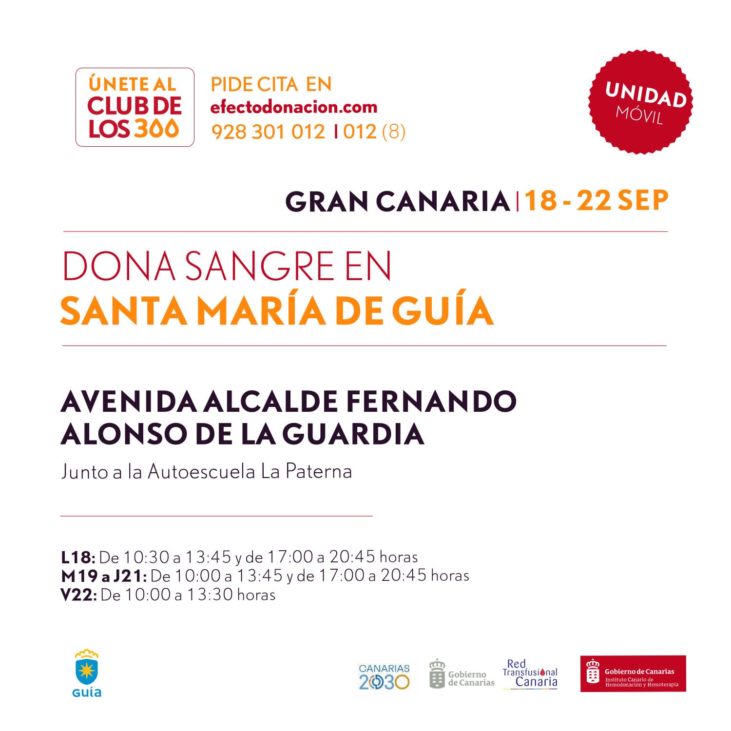 La unidad móvil del servicio de hemodonacióndel Gobierno de Canarias estará en Guía estasemana