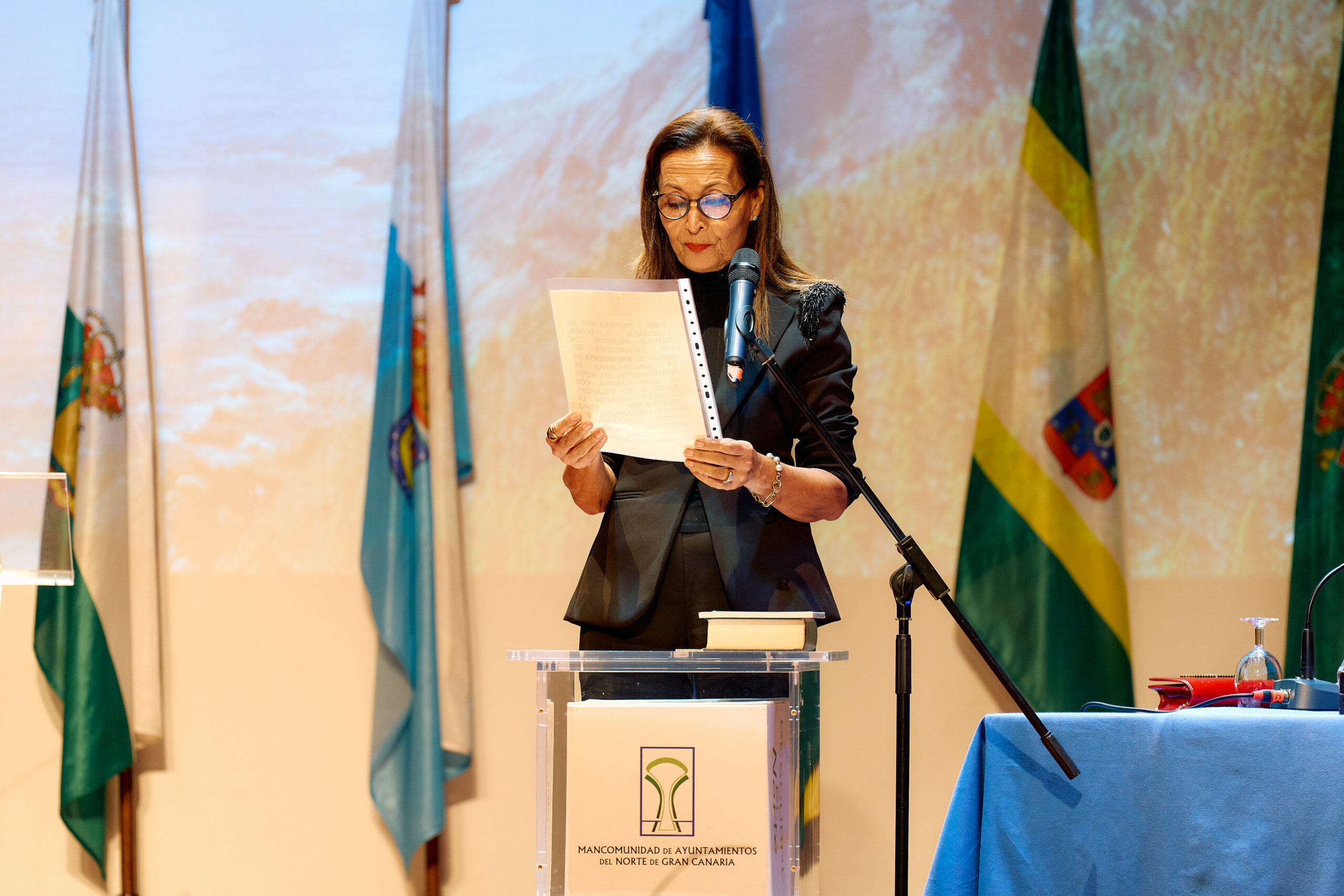 La nueva presidenta de la Mancomunidad, María del Carmen Rosario, asume en nombre del municipio de A…