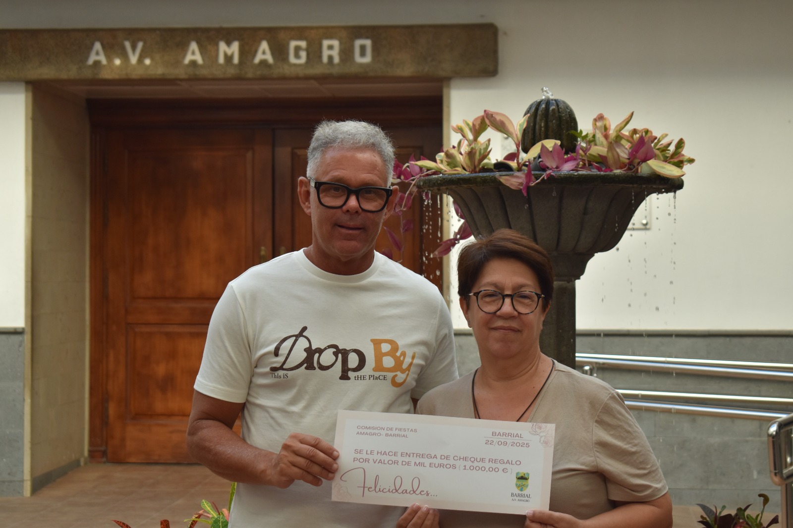 Pepe García presidente de la A.V. “Amagro” entrega los 1000€del sorteo de las fiestas 2025.