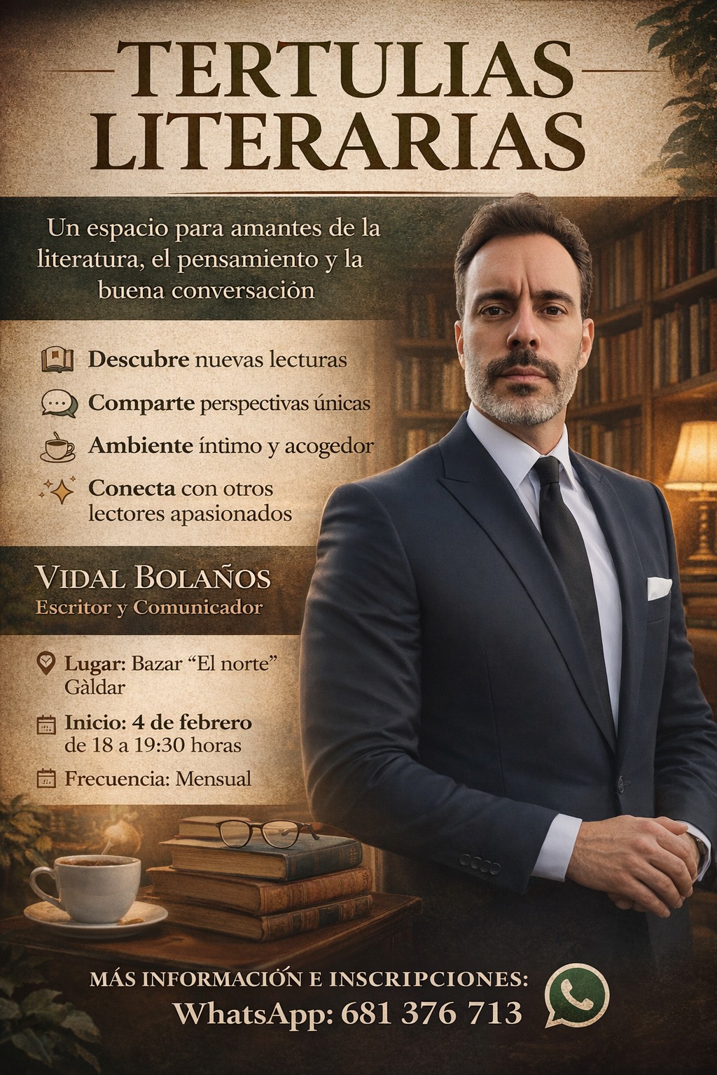 Te invitamos a formar parte de nuestras Tertulias Literarias, un espacio pensado para quienes aman leer, reflexionar y compartir. Bajo la guía de Vidal Bolaños, escritor y comunicador, exploraremos juntos el fascinante mundo de las letras en un ambiente íntimo y acogedor.
